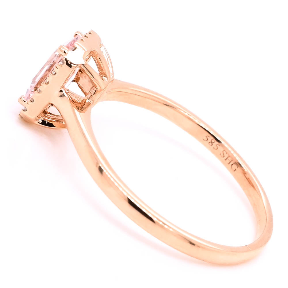 14KT Rose Gold 0.49CT Emerald shape Morganite & Diamond Ring. Diamo