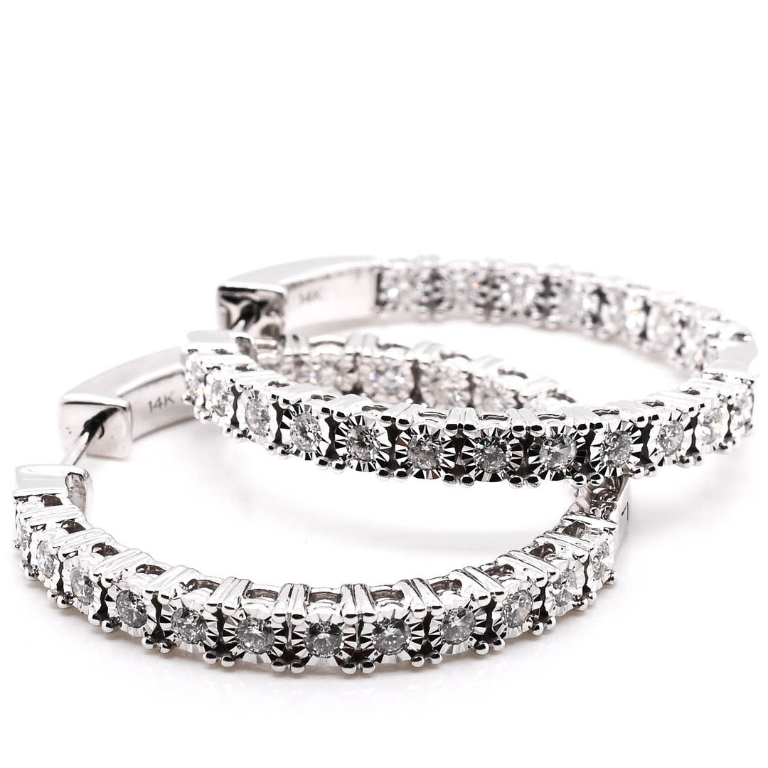 14KT White Gold 1.47CTW CTW Medium Hoop Style Backing Diamond Earrings