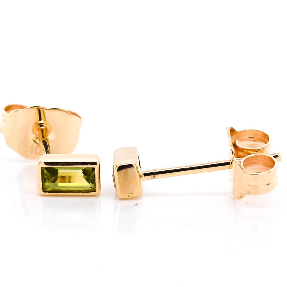 10KT Yellow Gold 0.20CT Baguette Peridot Bezel Set Stud Earrings.