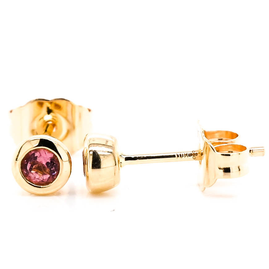 10KT Yellow Gold 0.50CT Pink Topaz Bezel Set Stud Earrings.
