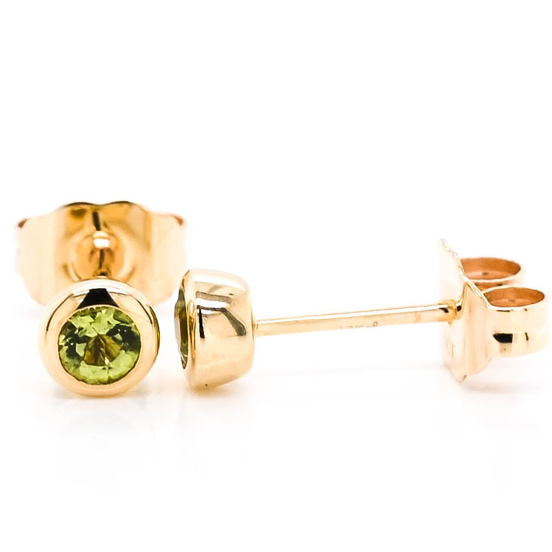 10KT Yellow Gold 0.50CT Peridot Bezel Set Stud Earrings.