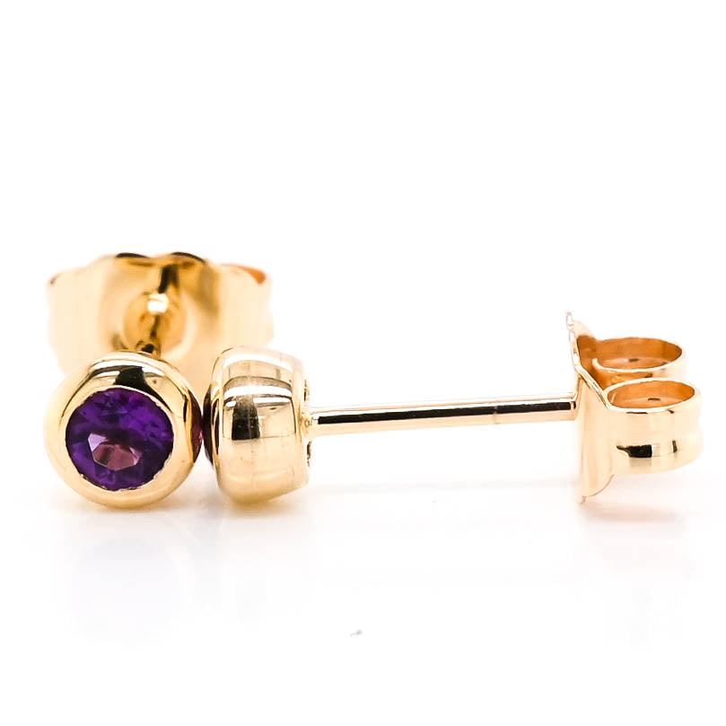 10KT Yellow Gold 0.50CT Amethyst Bezel Set Stud Earrings.