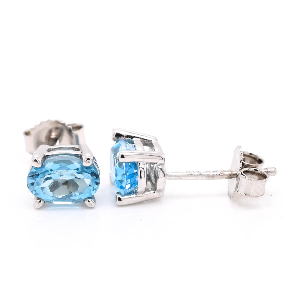 10KT White Gold 1.00CTW Oval Shape Blue Topaz Stud Earrings.