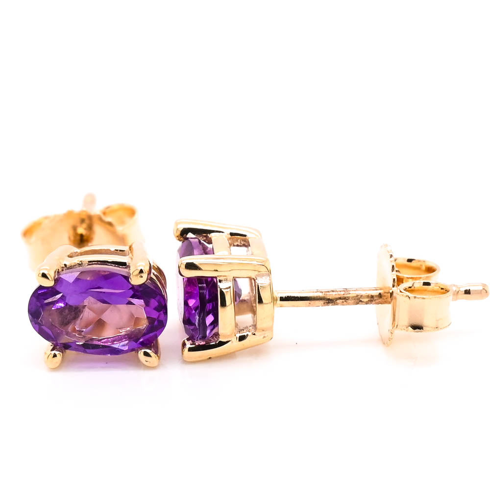 10KT Yellow Gold 1.00CTW Oval Shape Amethyst Stud Earrings.