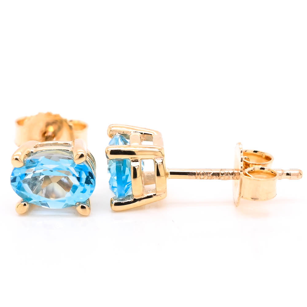 10KT Yellow Gold 1.00CTW Oval Shape Blue Topaz Stud Earrings.