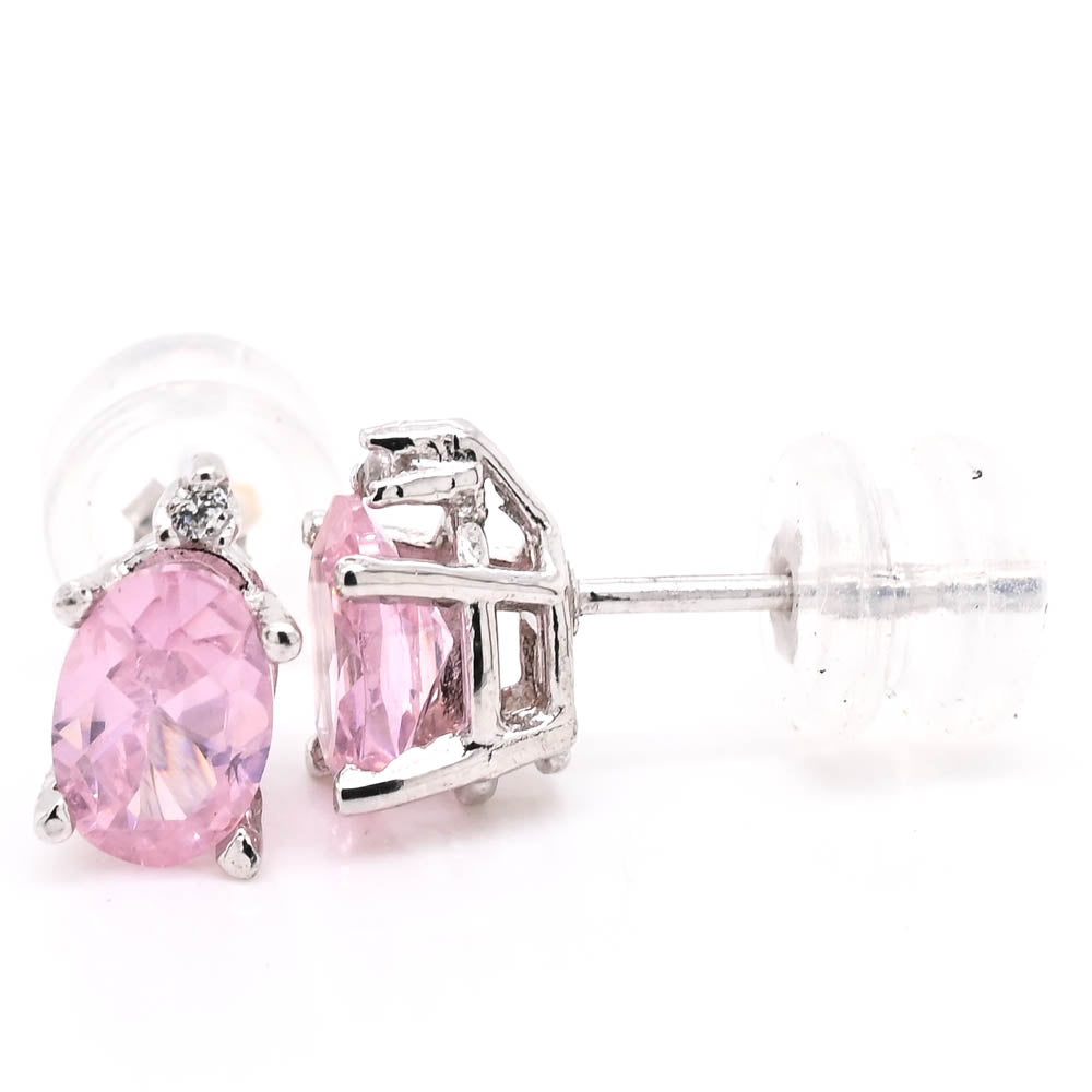 10KT White Gold Oval Shape Pink Topaz Earrings.
