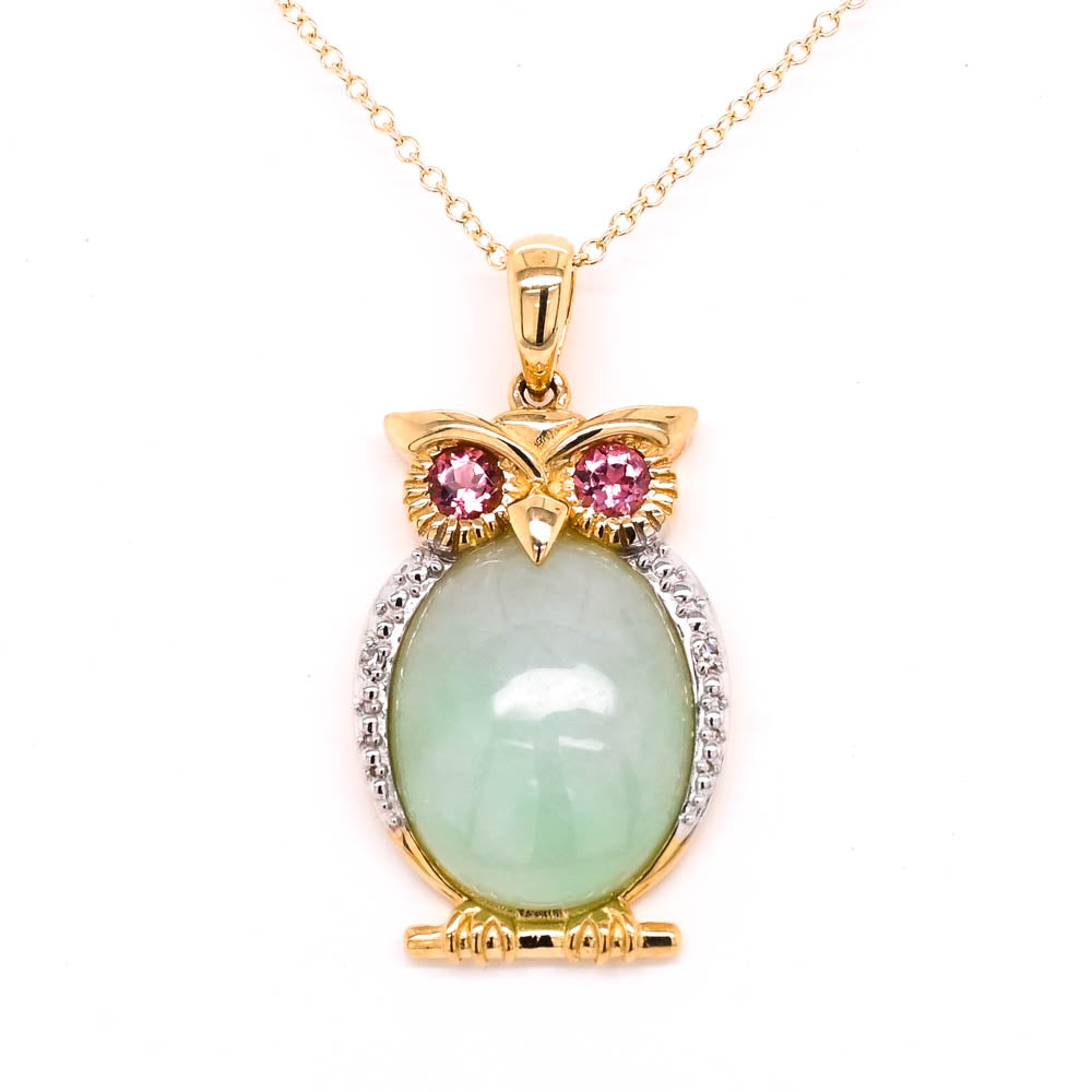 10KT Yellow Gold 18" Jade, Pink Tourmaline & Diamond Necklace.