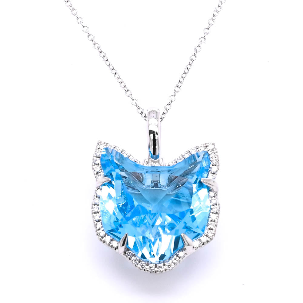 10KT White Gold 18" 11.00CT Fancy Shaped Blue Topaz & Diamond Necklace.