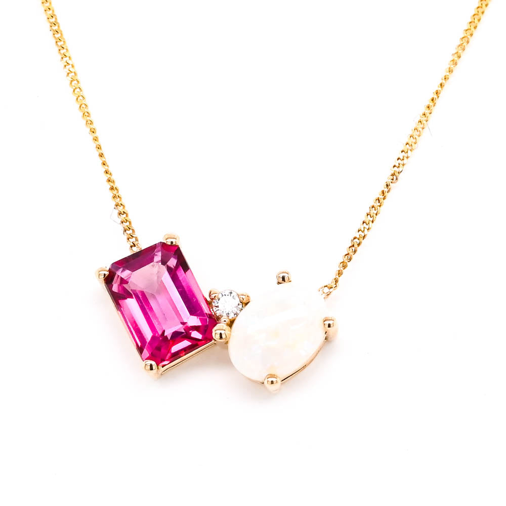 Fire & Ice 10KT Yellow Gold 18" Opal,Pink Topaz & Canadian Necklace.