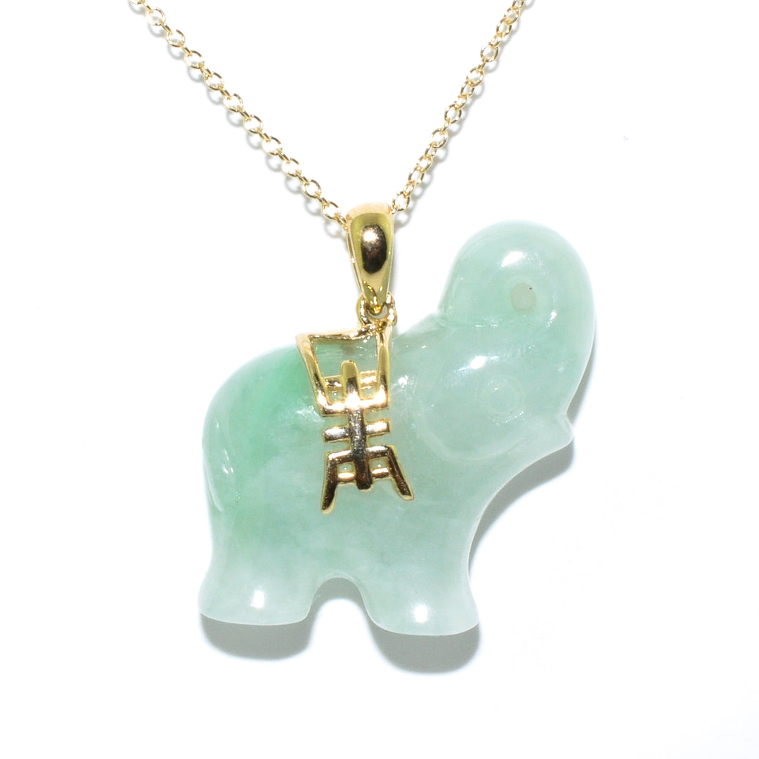 10KT Yellow Gold 18" Jade Elephant Necklace.