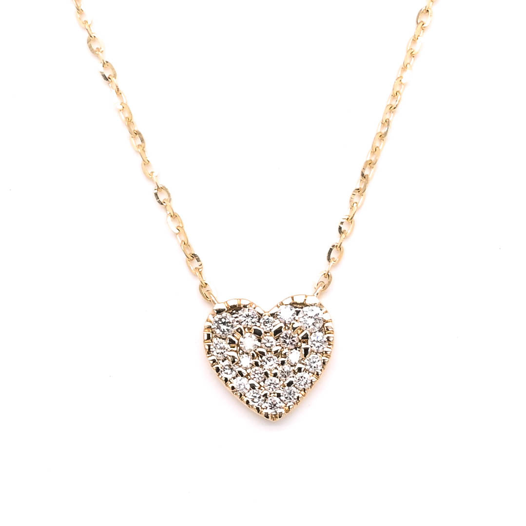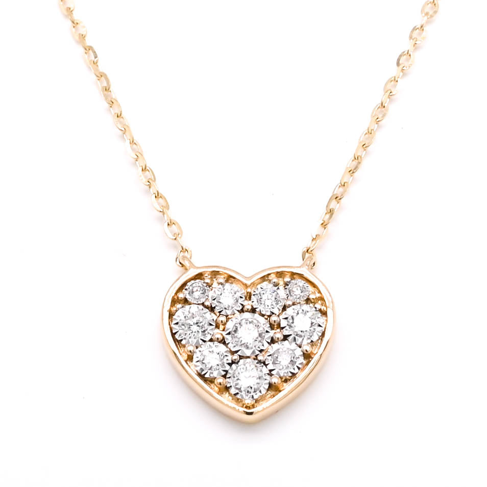 14KT Yellow Gold 18" 0.17CTW Diamond Pave Set Heart Necklace.