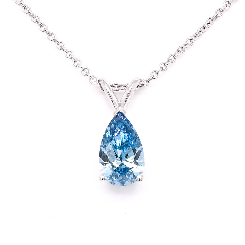 14KT White Gold 18" 1.14CT Pear Shape LAB Created Fancy Blue Diamond Necklace.