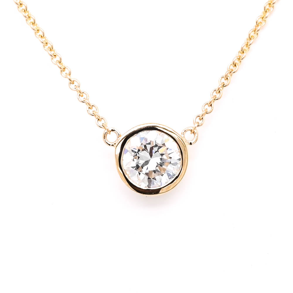 10KT Yellow Gold 18" 1.00CT VS-SI F-G Colour Round Brilliant Lab Grown Diamond Bezel Set Necklace.