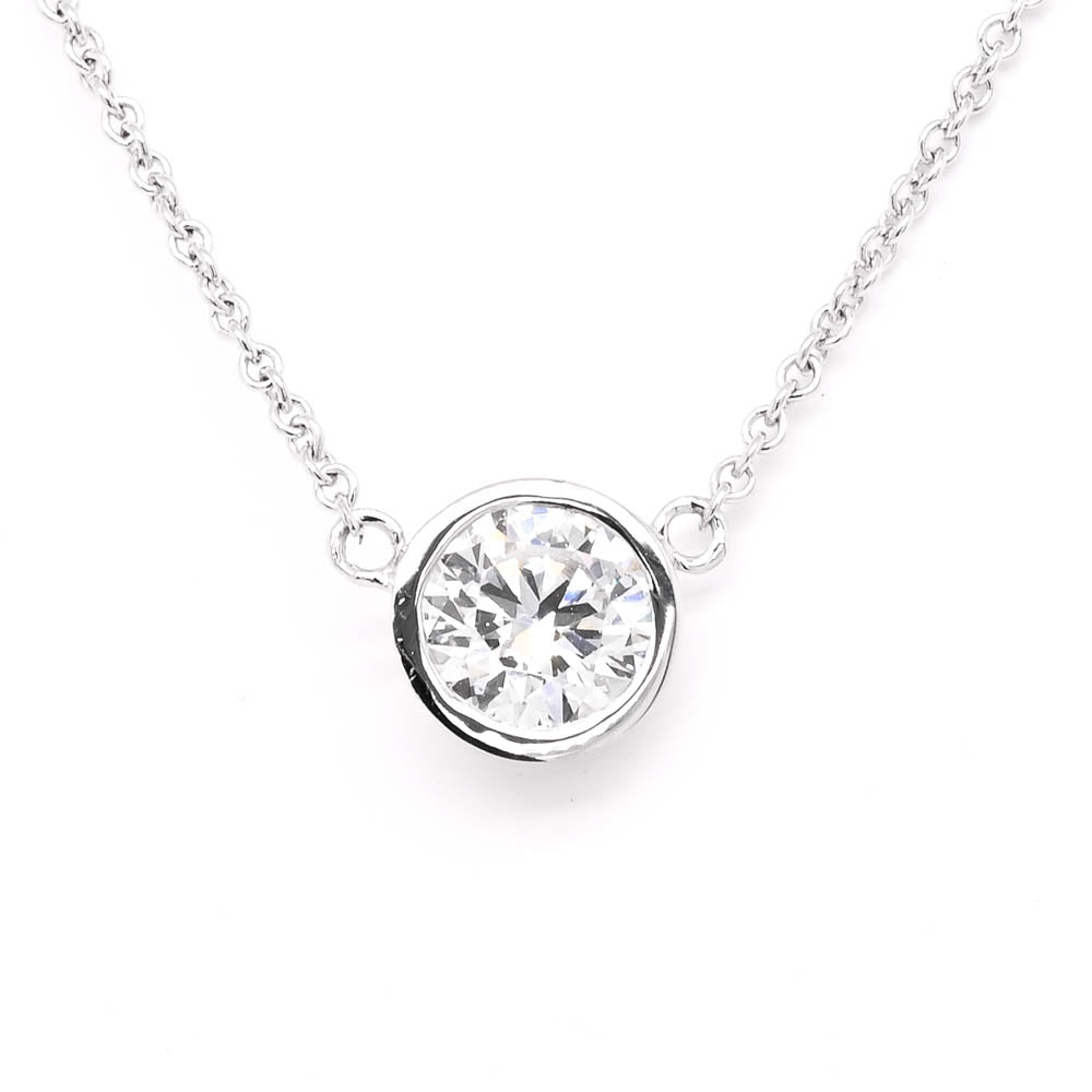 14KT White Gold 18" 0.70CT Round Brilliant LAB Created Diamond Bezel Set Necklace.