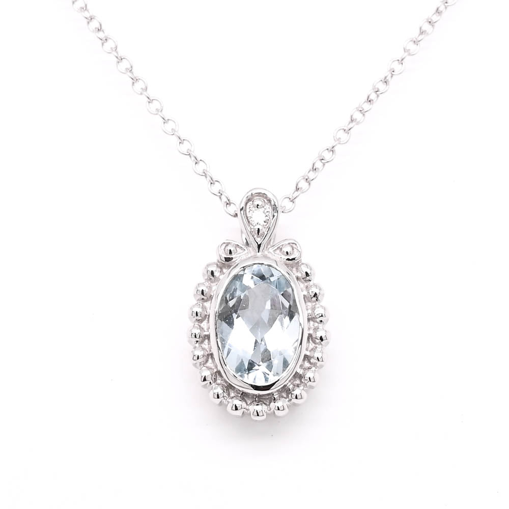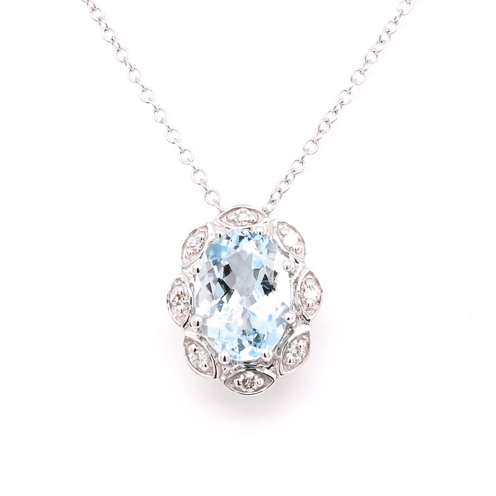 10KT White Gold 18" 0.75CT Aquamarine & Diamond Necklace.