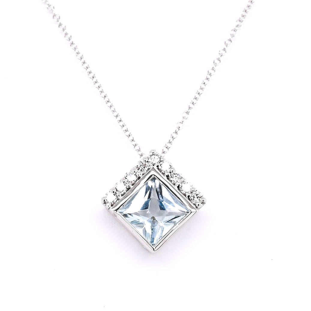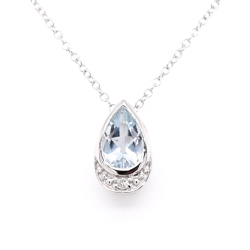 10KT White Gold 18" 0.35CT Aquamarine & Diamond Necklace.