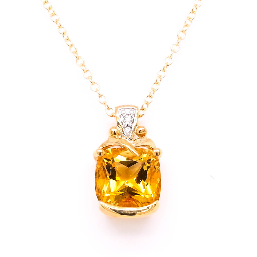 10KT Yellow Gold 18" 0.80CT Citrine & Diamond Necklace.