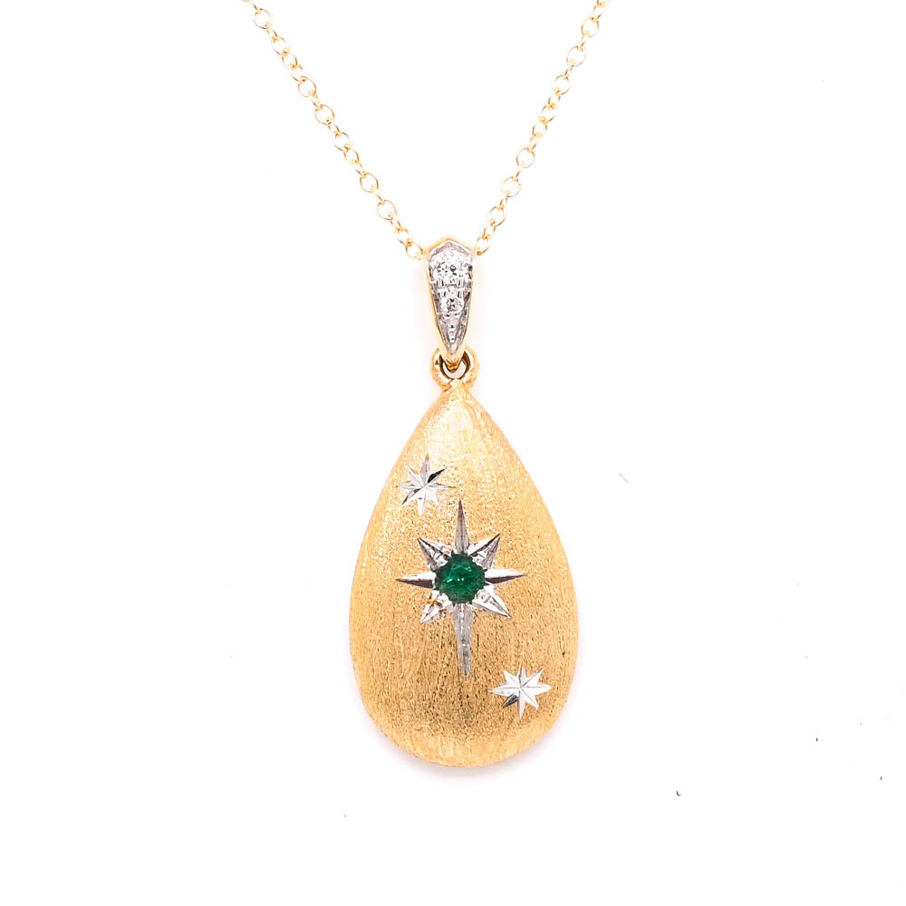 10KT Yellow Gold 18" 0.05CTW Emerlad & Diamond Necklace.