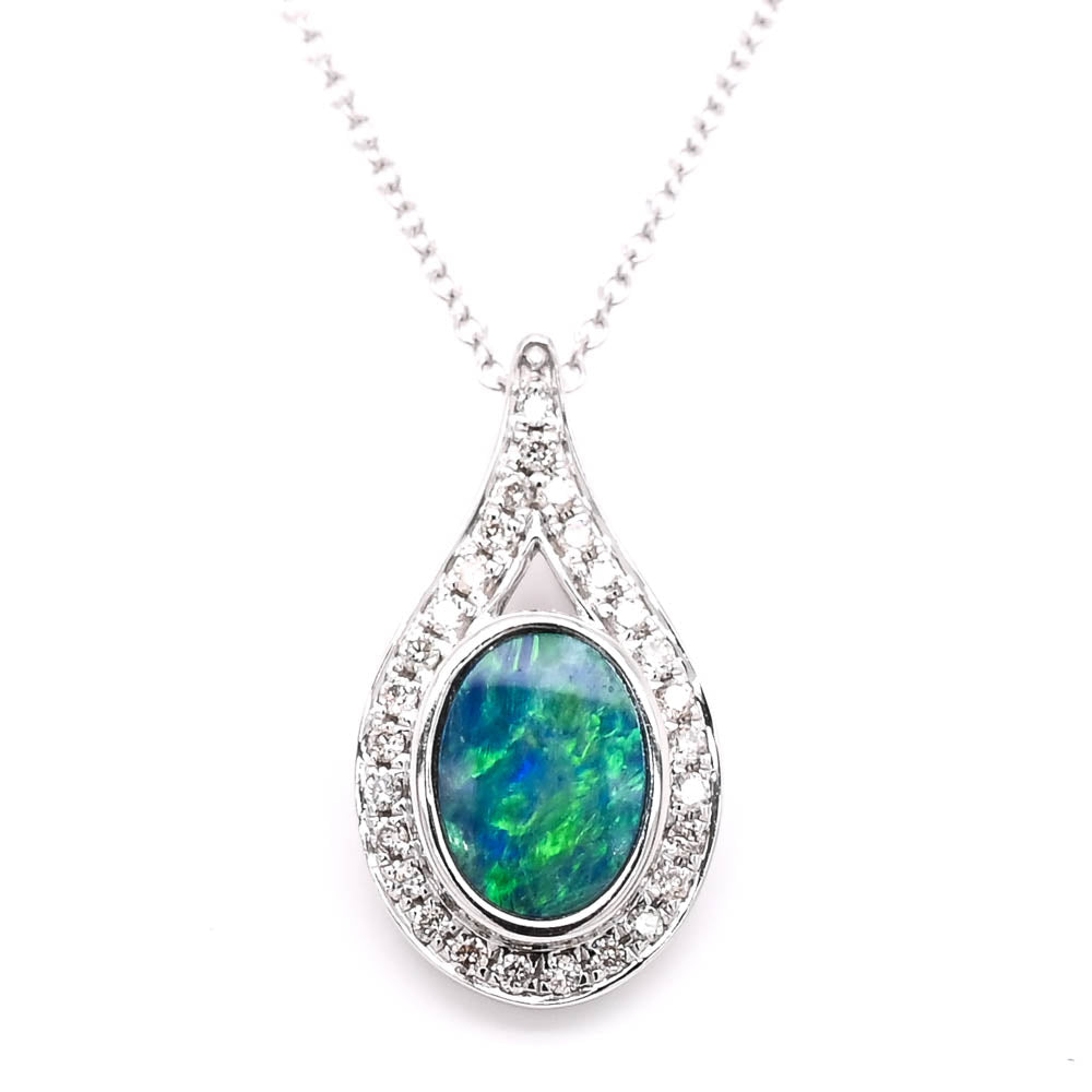 10KT White Gold 18" 0.60CT Opal Doublet & Diamond Necklace.