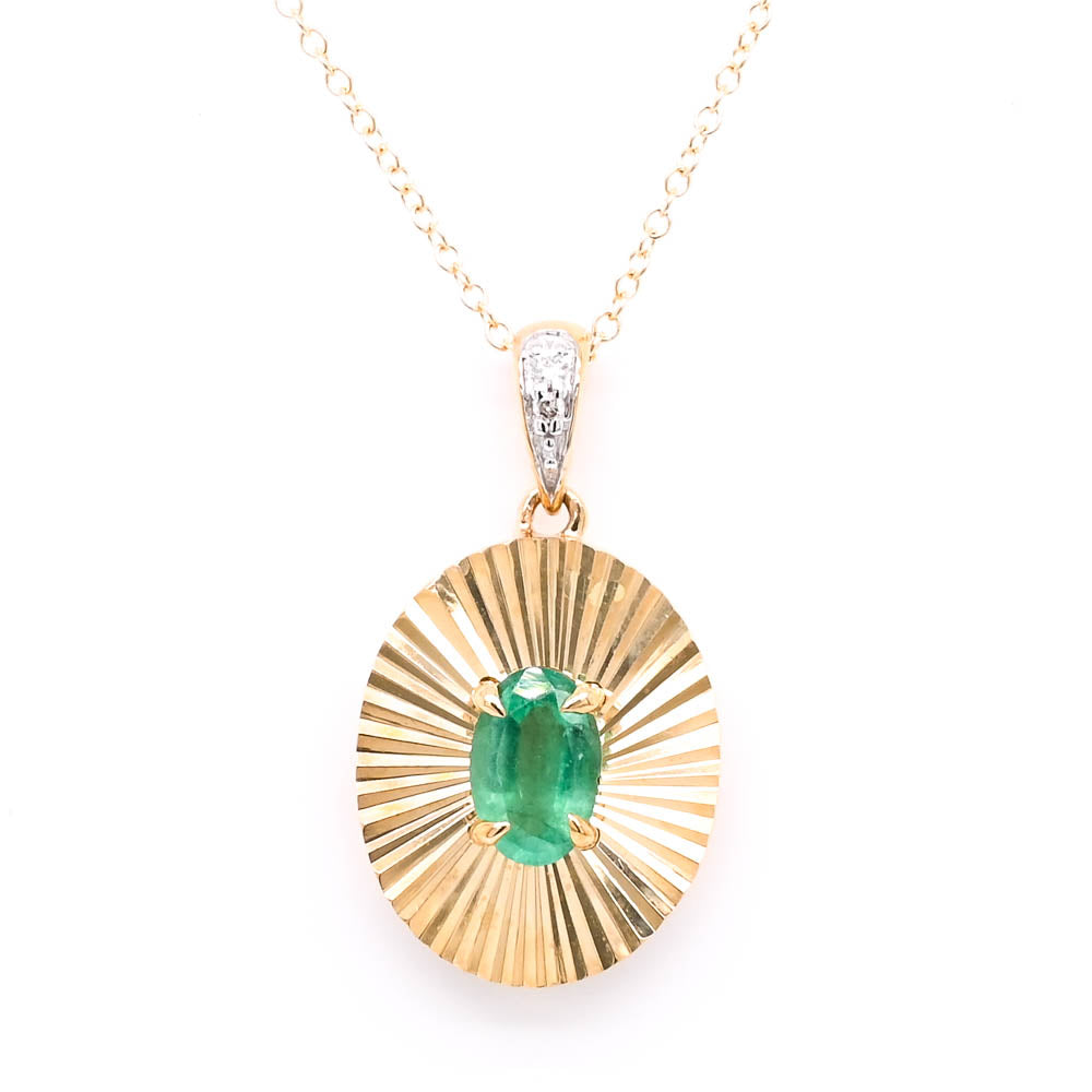 10KT Yellow Gold 18"0.45CTW Emerald & Diamond Necklace.