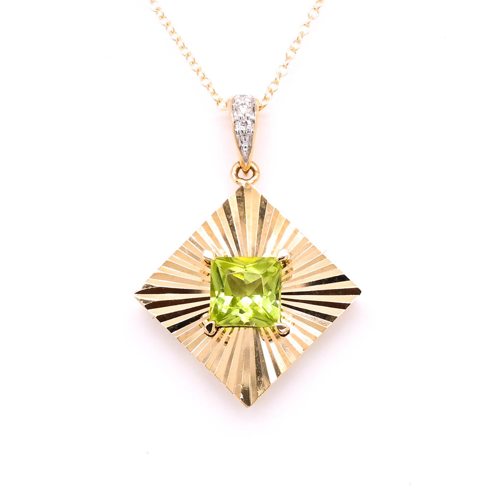 10KT Yellow Gold 18" 0.90CTW Peridot & Diamond Necklace.