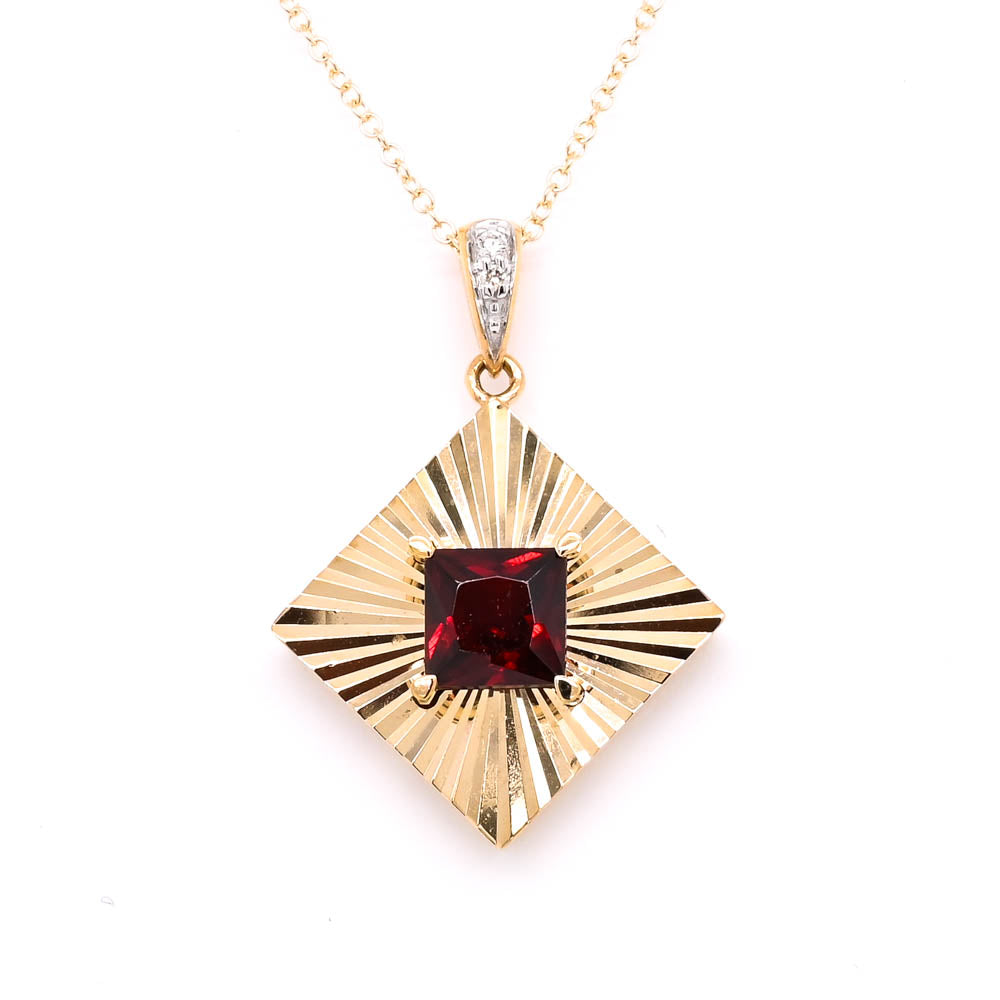 10KT Yellow Gold 18" 0.75CTW Garnet & Diamond Necklace.