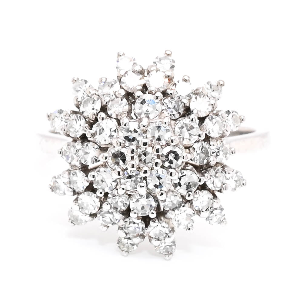 14KT White Gold 0.80CTW Diamond Cluster Celebration Ring.