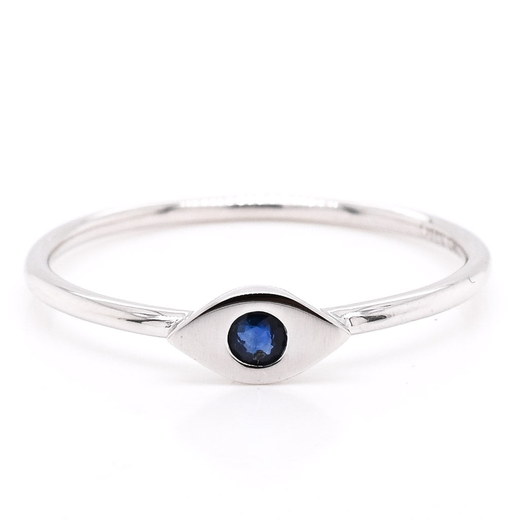 14KT White Gold 0.05CT Round Blue Sapphire Evileye Ring.