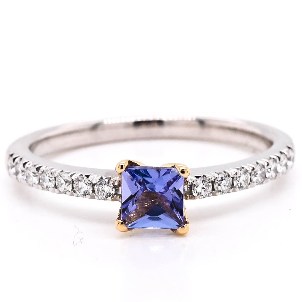 18KT White & Yellow Gold 0.39CT Princess Cut Tanzanite and Diamond Ring.