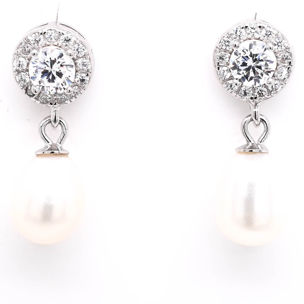 Sterling Silver Pearl & C.Z Drop Earrings.