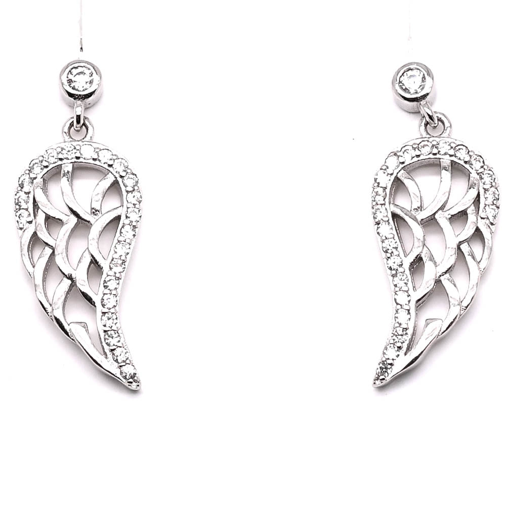 Sterling Silver C.Z Angel Wing Drop Earrings.