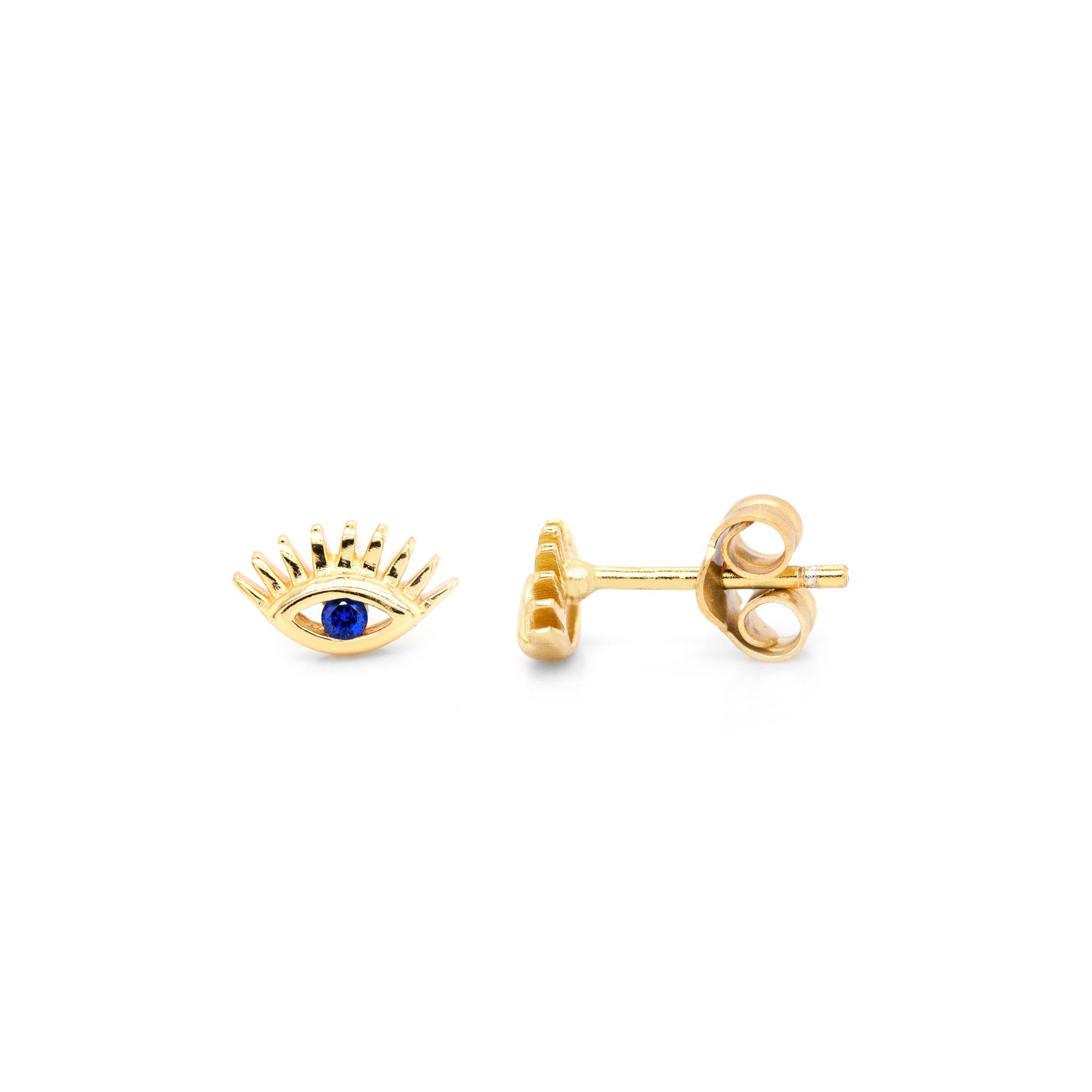 Graziella Sterling Sillver Gold Vermeil C.Z Evil Eye Stud Earrings.