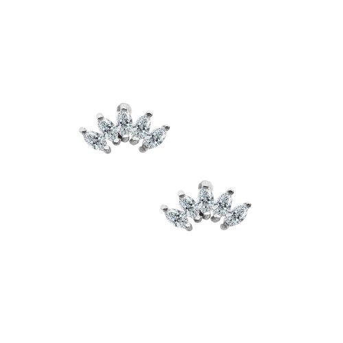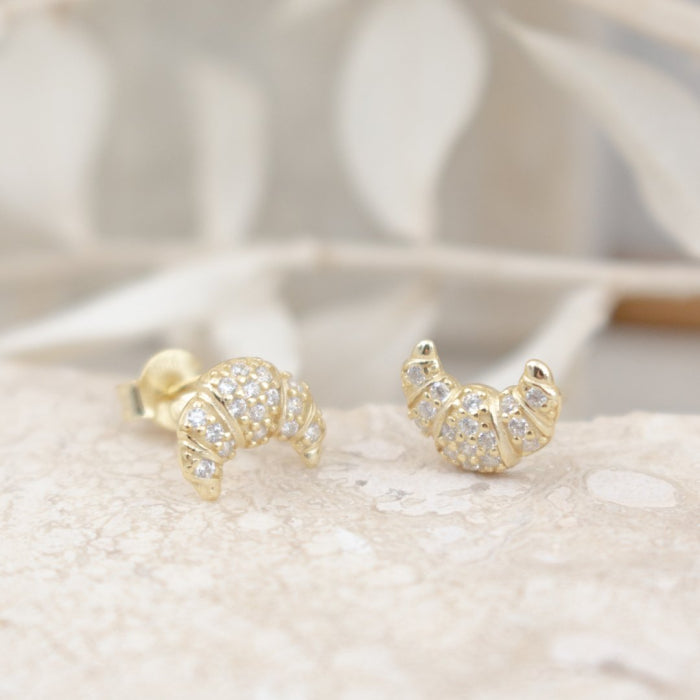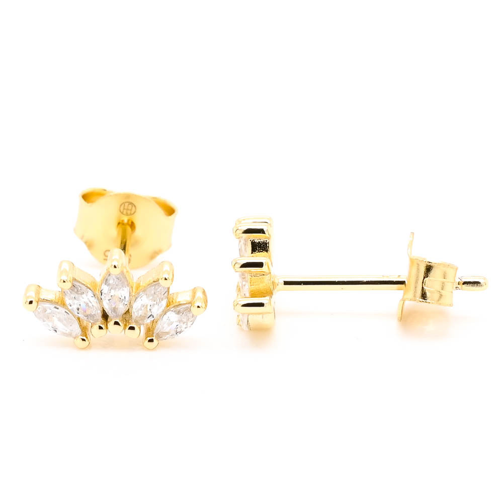 Graziella Sterling Silver Gold Vermeil Mini White CZ Croissants Studs
