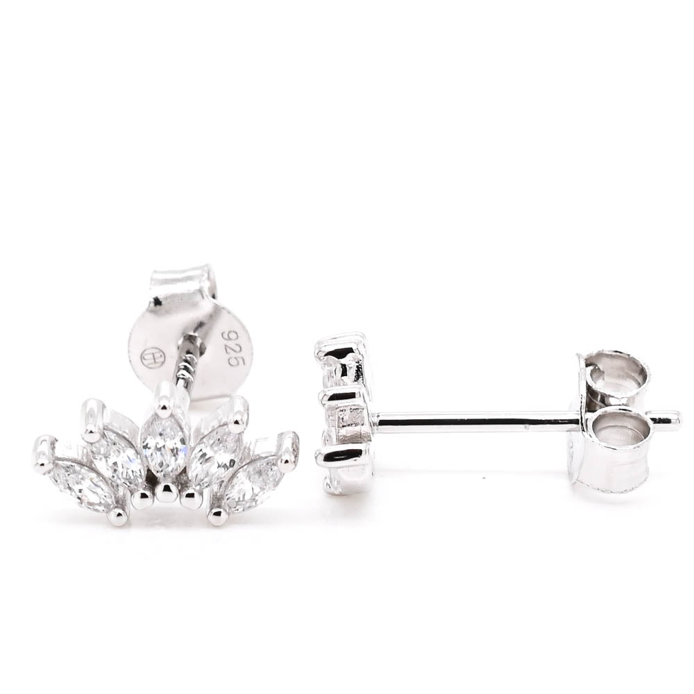 Graziella Sterling Silver C.Z Starburst Stud Earrings.