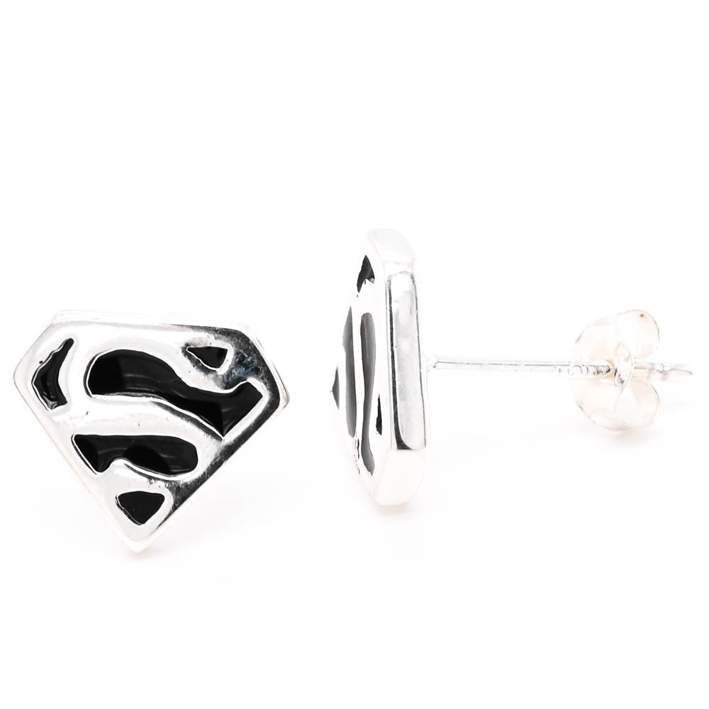 Sterling Silver C.Z Superman Stud Earrings.