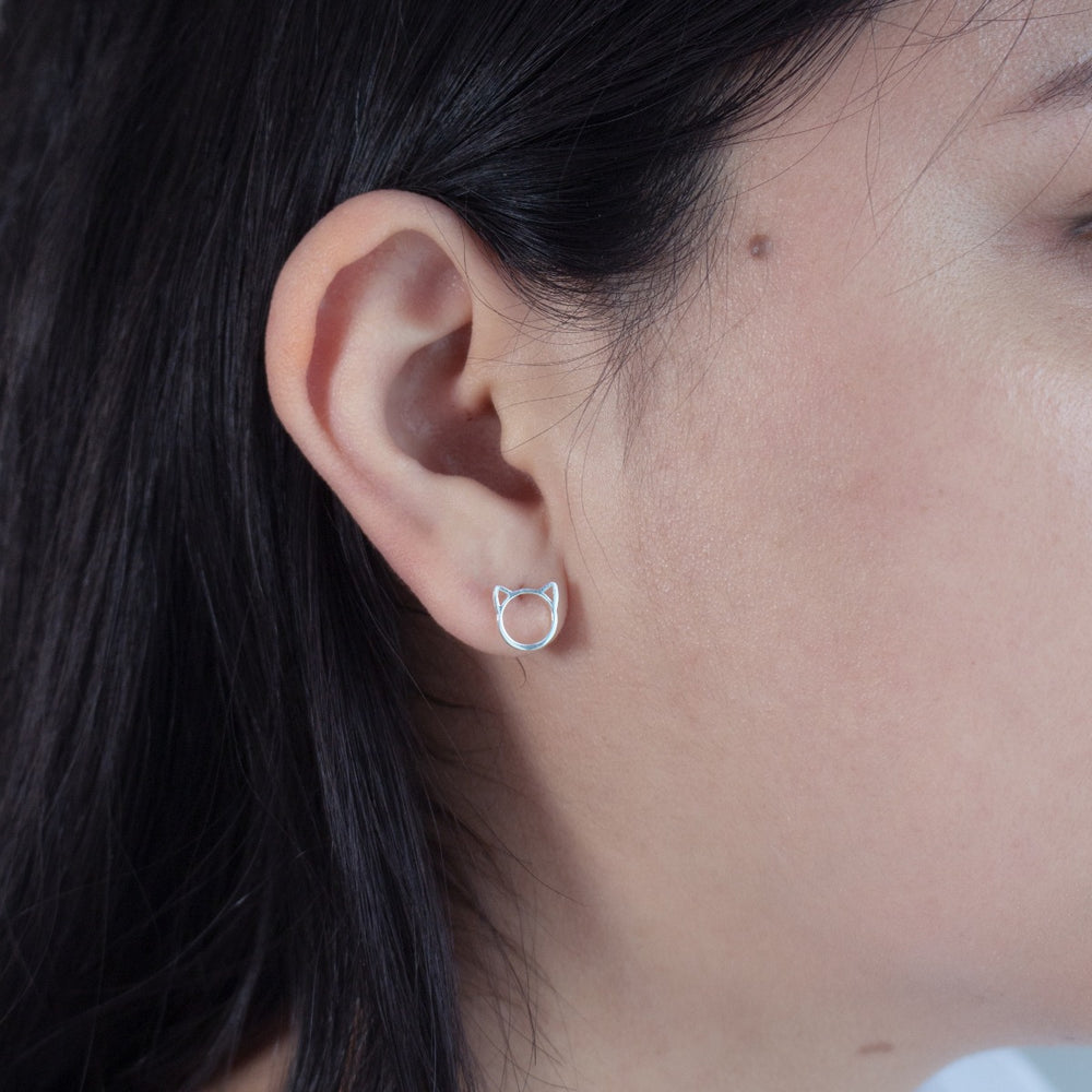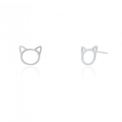Graziella Sterling Silver Hollow Cat Stud Earrings.