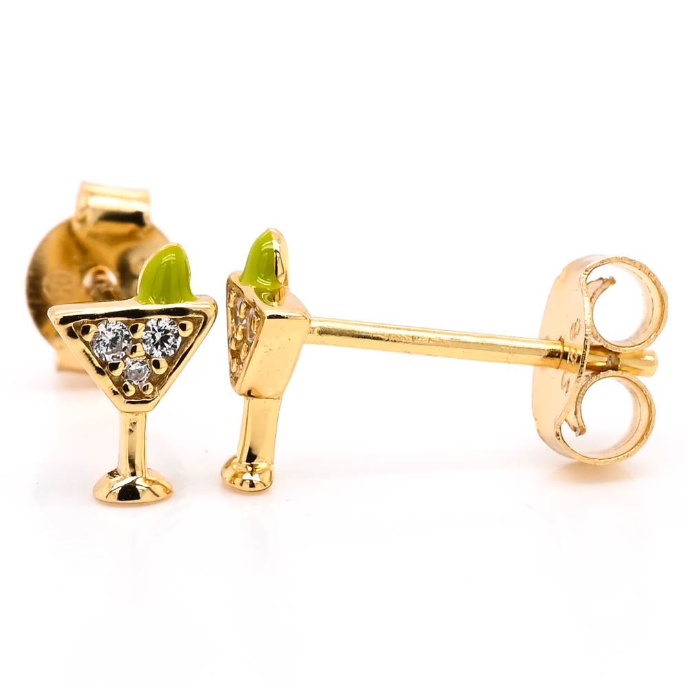 Graziella Sterling Silver Gold Vermeil C.Z Martini Stud Earrings.