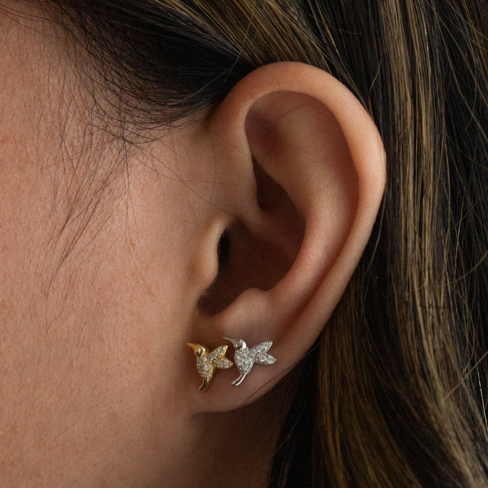 Graziella Sterling Silver C.Z Hummingbird Stud Earrings.