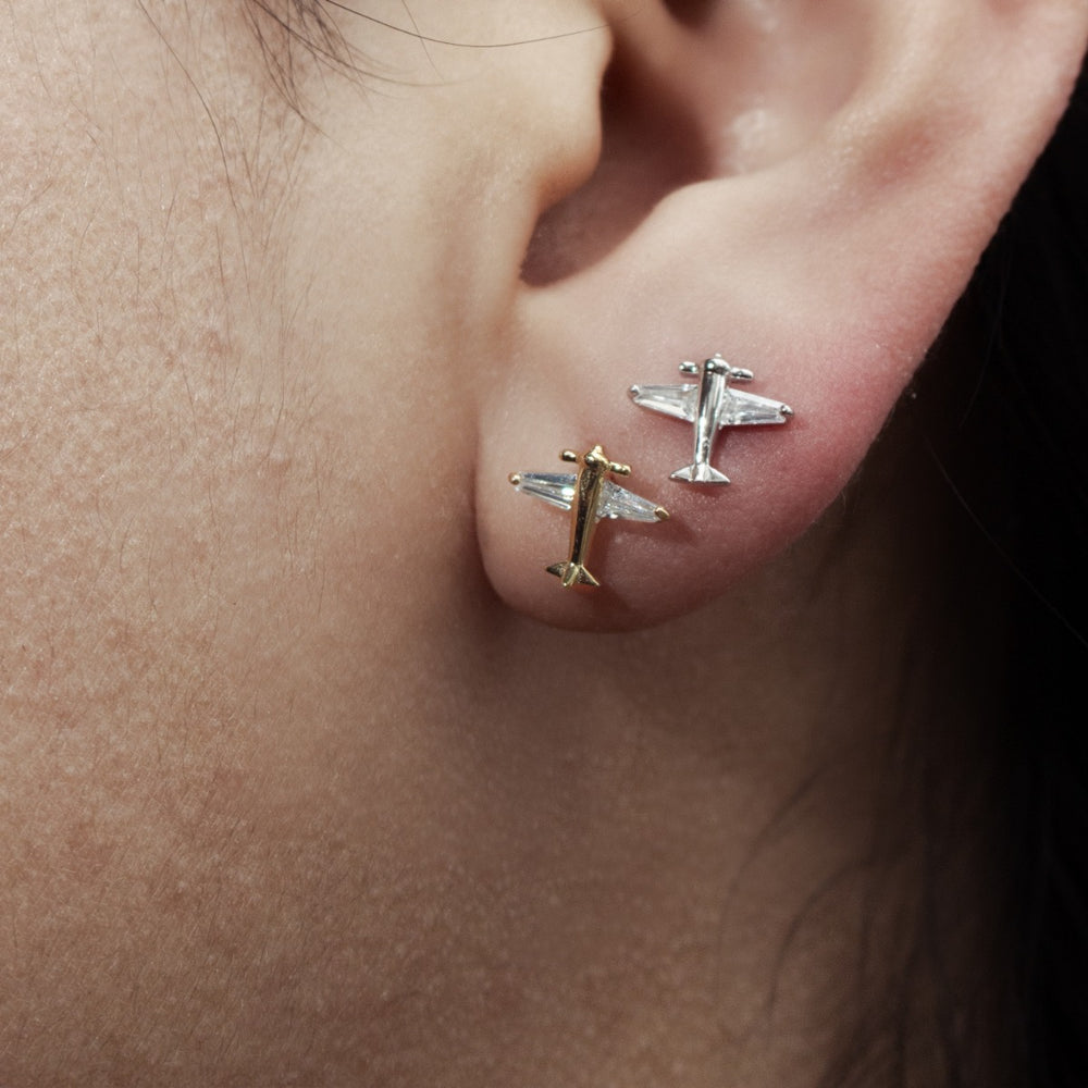 Graziella Sterling Silver C.Z Airplane Stud Earrings.