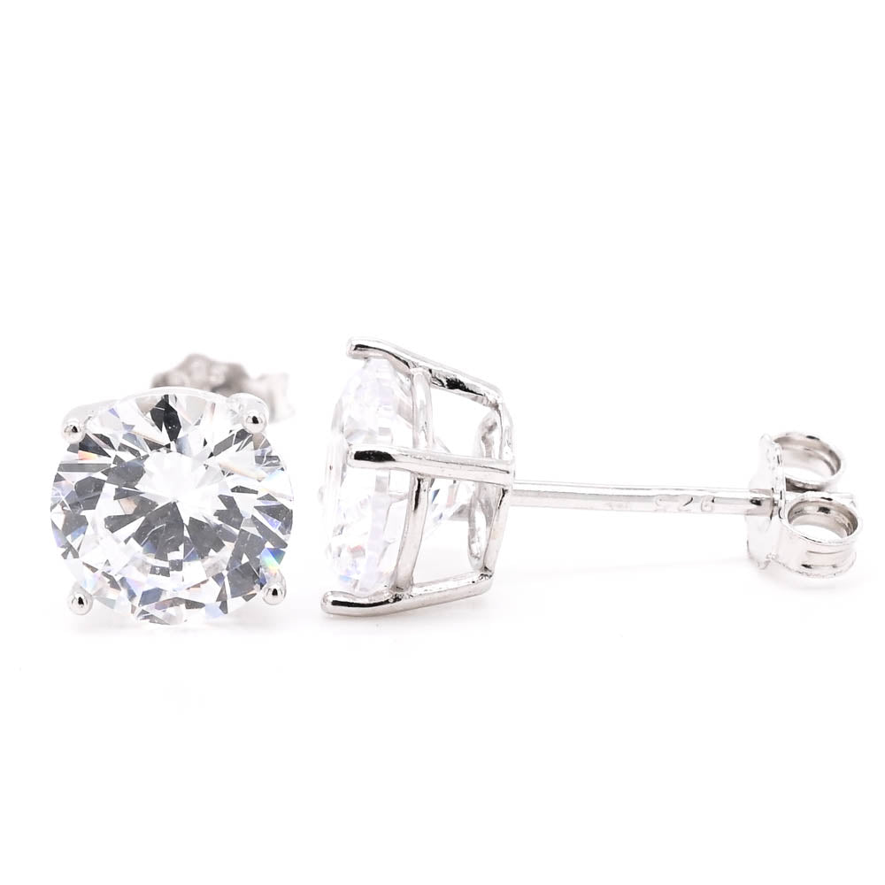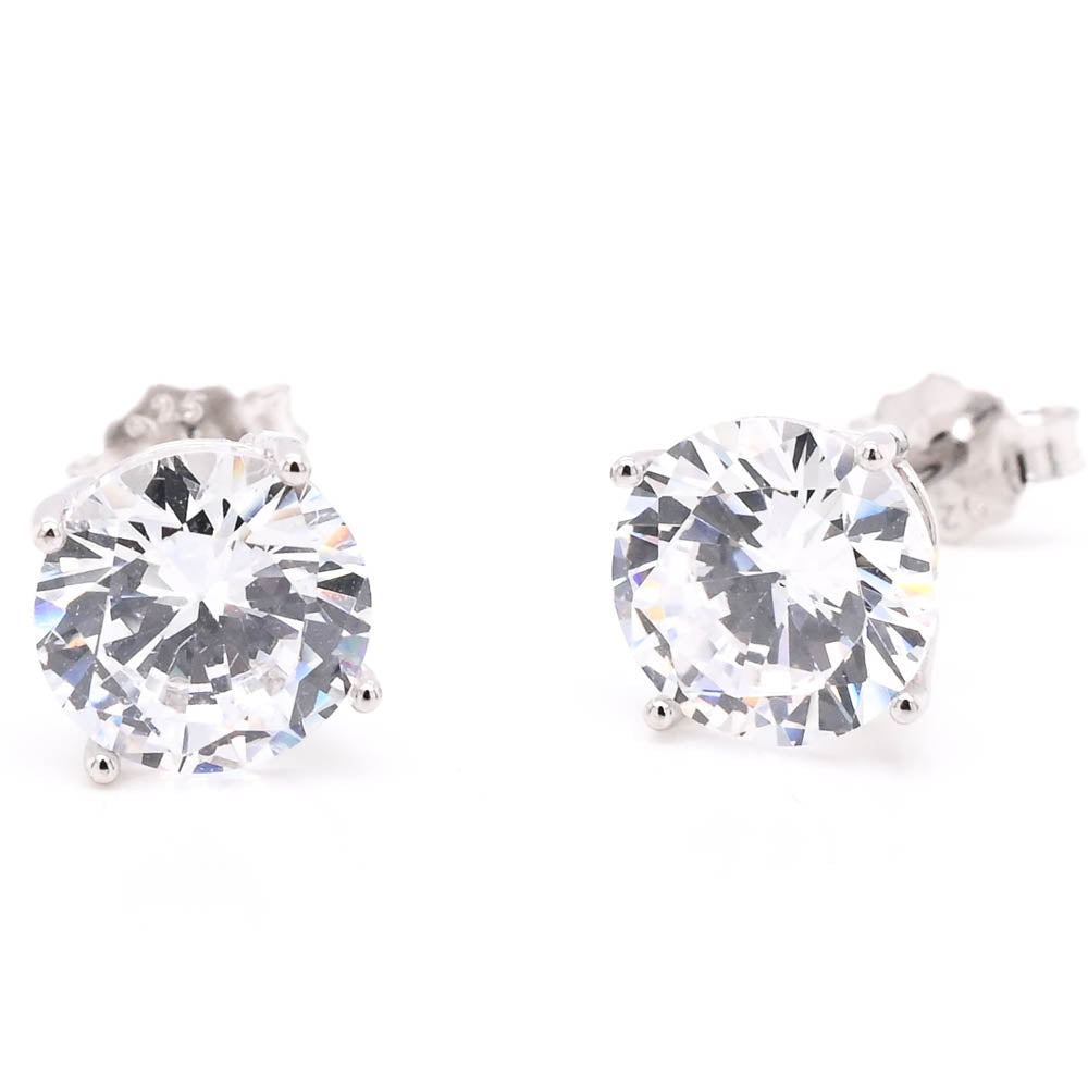 Graziella Sterling Siver Round CZ 8mm Stud Earrings.