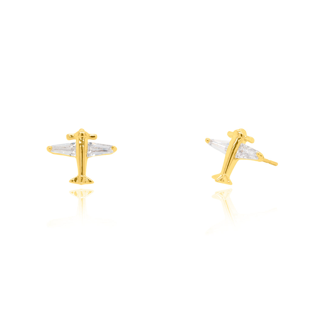 Graziella Sterling Silver Gold Vermeil C.Z Airplane Stud Earrings.