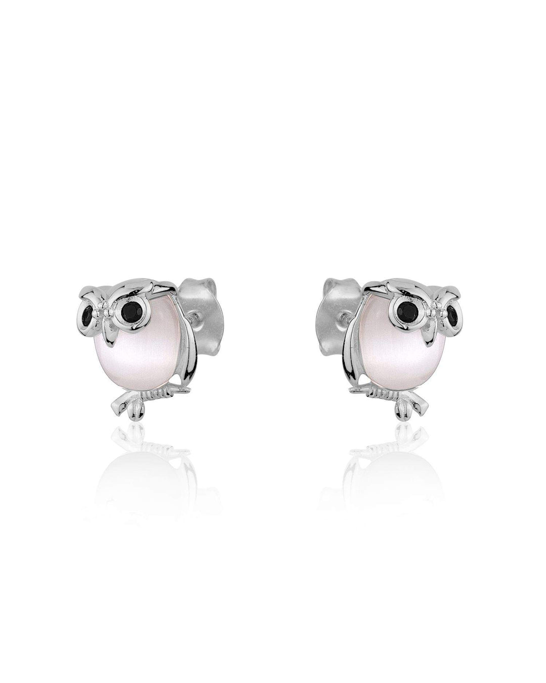 Larus sterling silver Blak Onyx Cat eye opal Owl Stud Earrings.