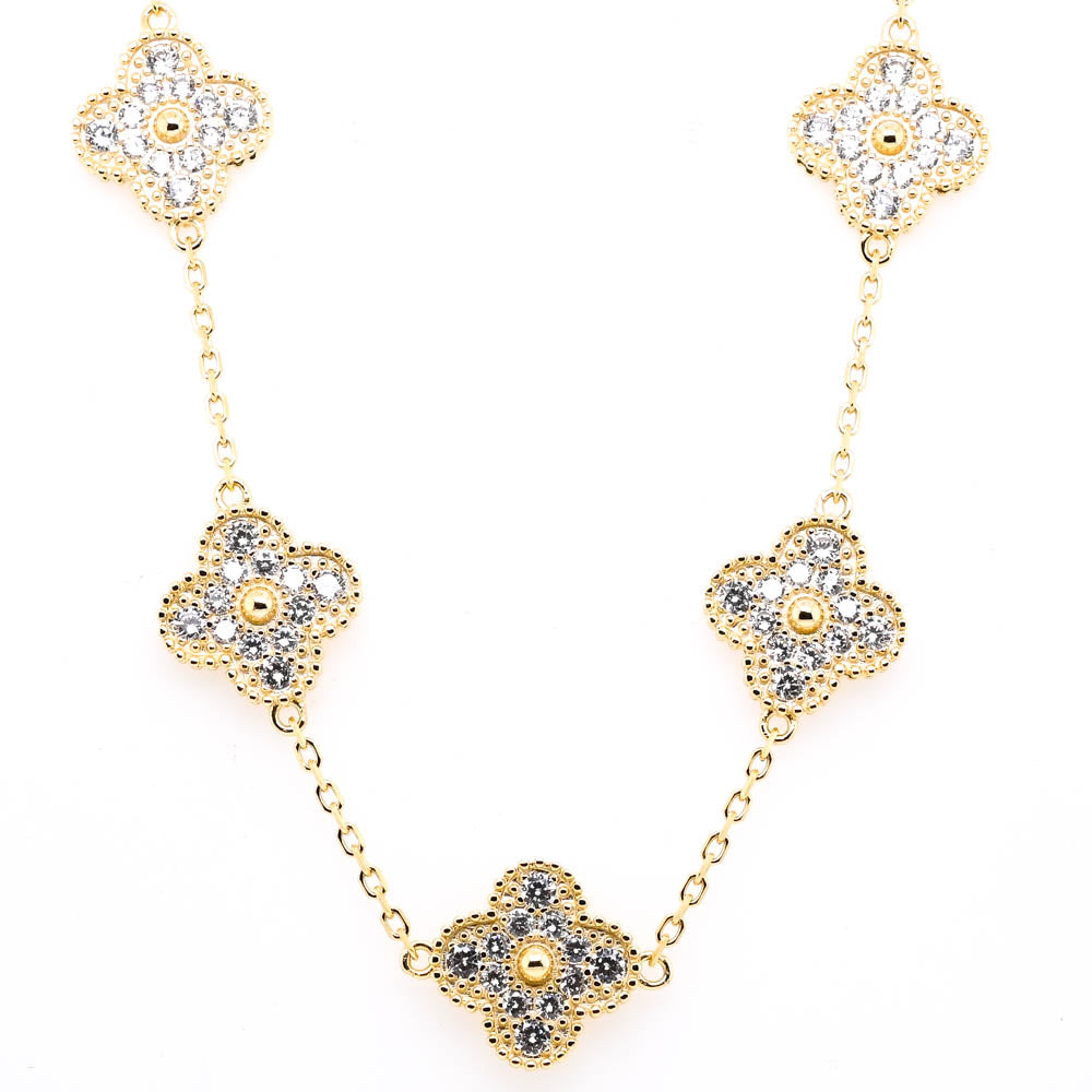 Sterling Silver Gold Plated 36" Multi C.Z Clover Necklace.
