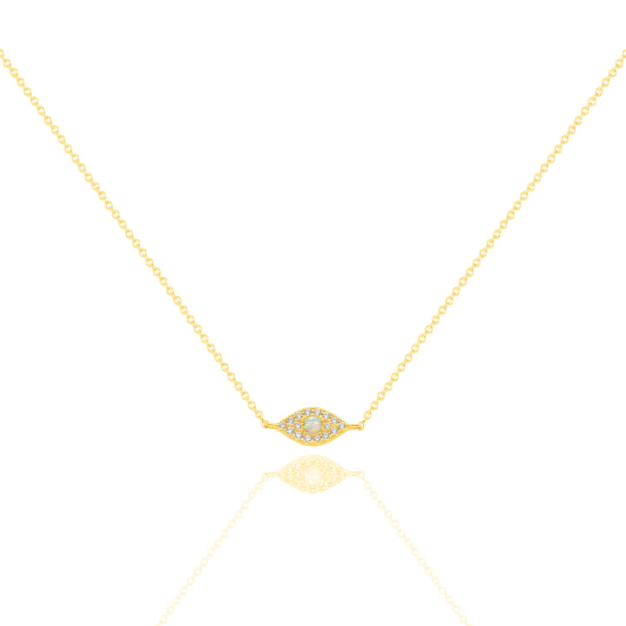 Sterling Silver Gold Vermeil 18" CZ Pave Evil Eye Necklace