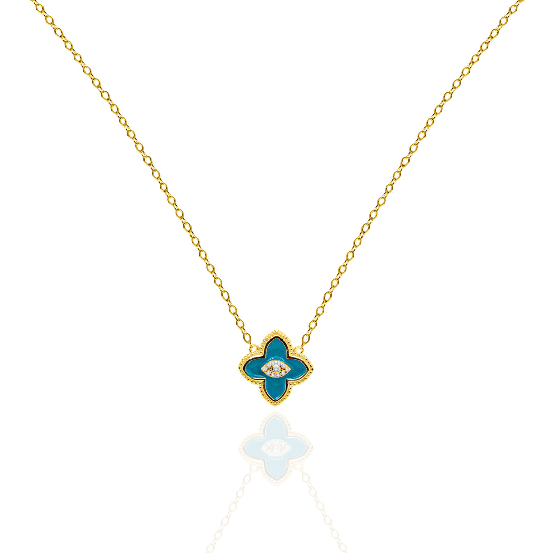 Sterling Silver Gold Vermeil 18" CZ Enamel Evil Eye Clover Necklace