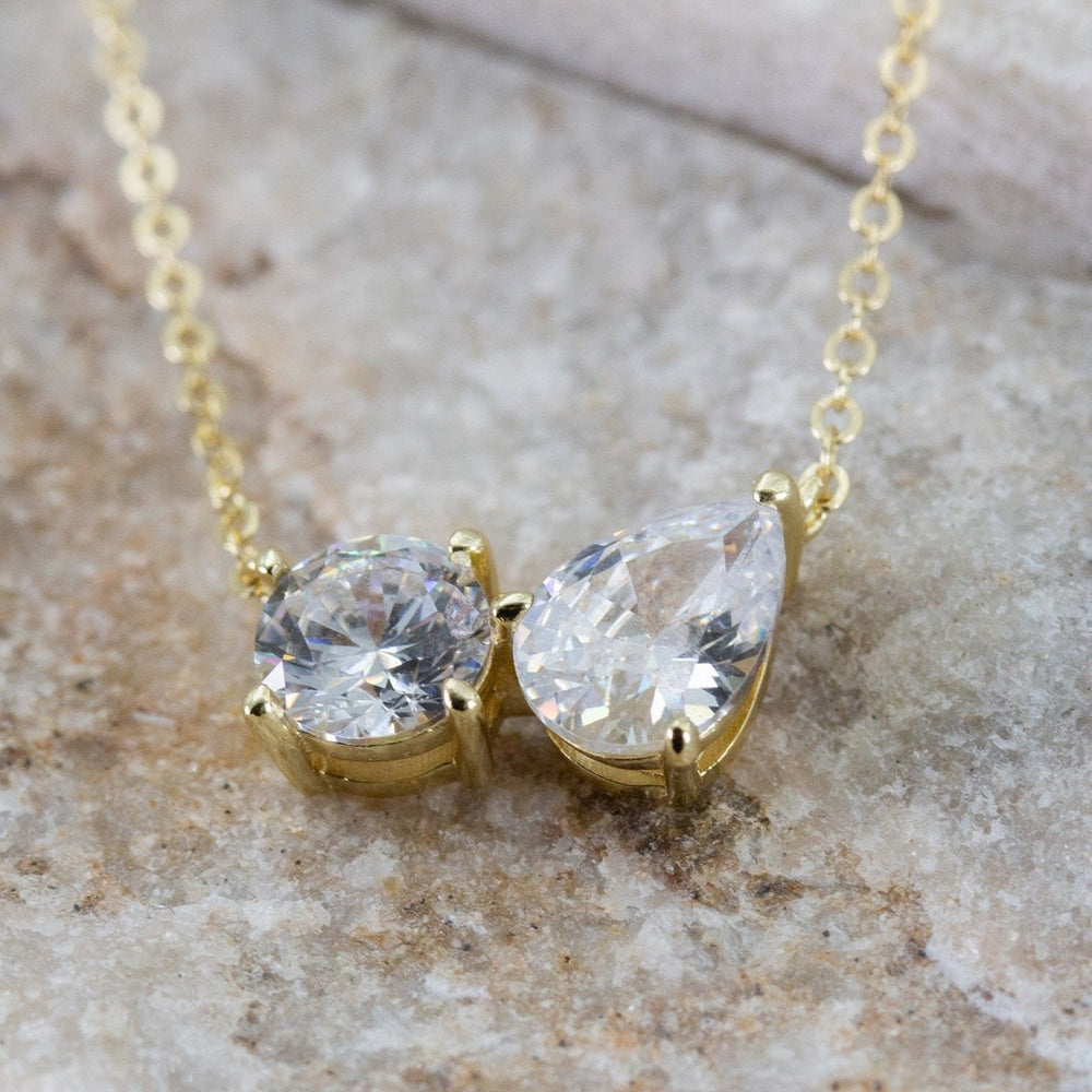Sterling Silver 18" Toi Et Moi Round and Teardrop CZ Necklace.