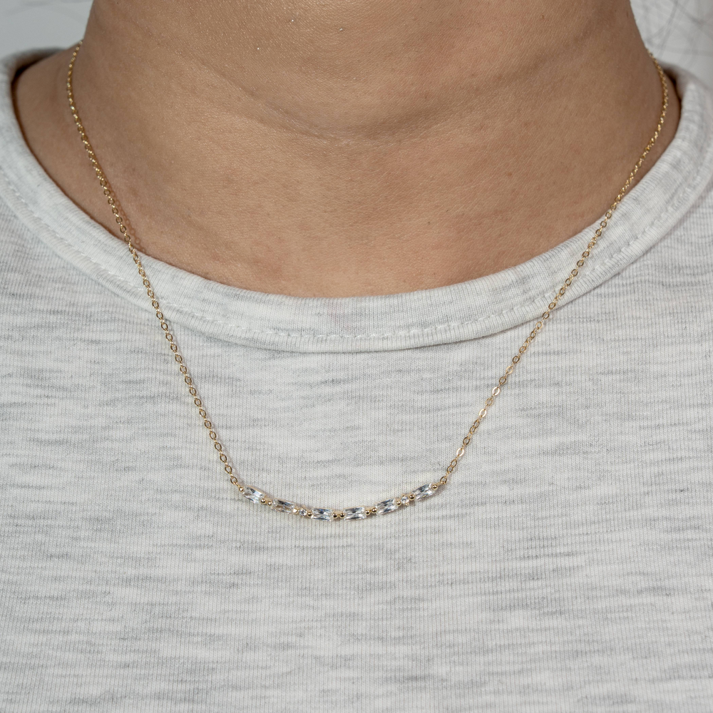 Graziella Sterling Silver Gold Vermeil Curved "Smile" Necklace.