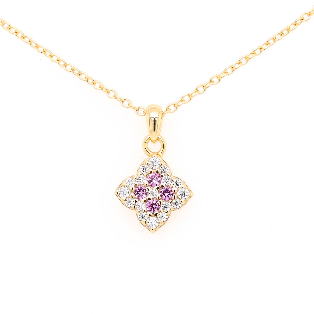 Graziella Sterling Silver Gold Vermeil C.Z Clover Necklace.