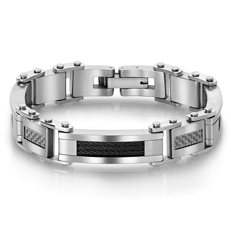Italgem Steel 9" 11MM Carbon Fibre Black Cable Bracelet.