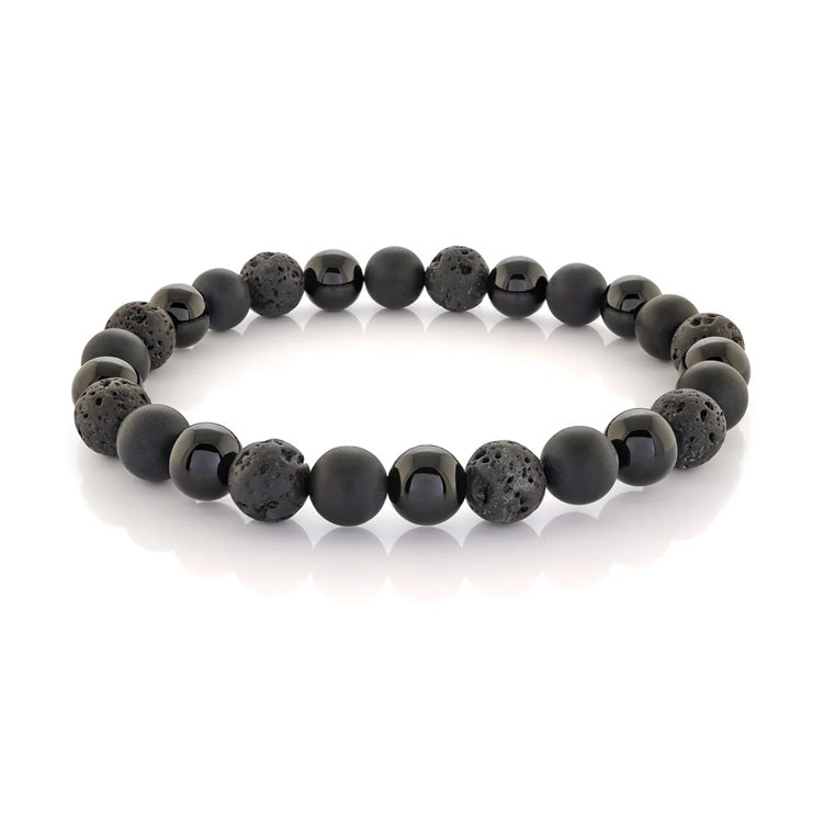 Italgem steel 9" Black Matte Shiny-Onyx 8mm Bead Bracelet.